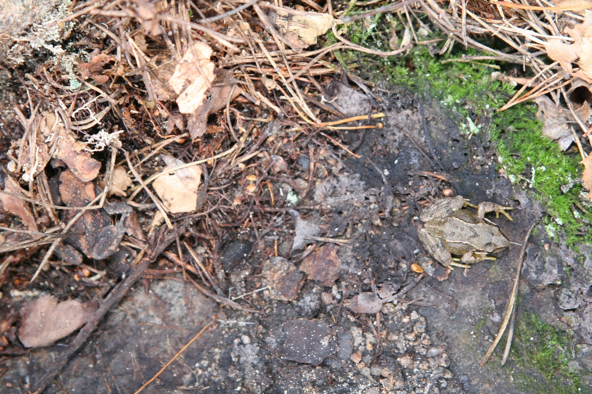 'Bilder från Rambomosse, tagna under arbete med inventering av hasselsnok vid Rambomosse och Hålsjöområdet: :: :: 1 groda till höger, och en vanlig padda till vänster. :: :: Ingår i serie med fotonr. 7075:1-42. Bilderna tagna i samband med arbetet att skriva en rapport om ''Hasselsnoken vid Rambo mosse''. Rapportens författare, Leif Lithander, Anders Nilsson och Göran Nilson, Göteborgs Naturhistoriska Museum 2007-11-27.'