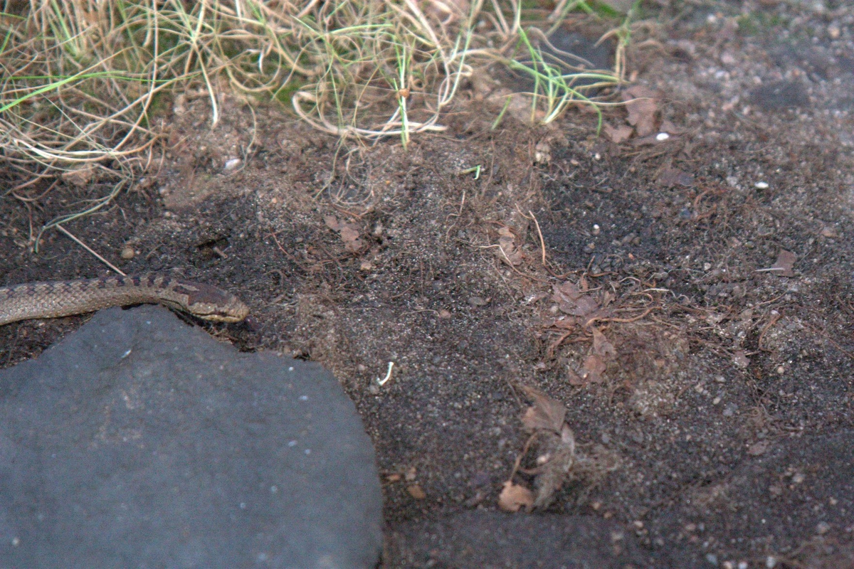 'Bilder från Rambomosse, tagna under arbete med inventering av hasselsnok vid Rambomosse och Hålsjöområdet: :: :: Hasselsnok invid stenblock. :: :: Ingår i serie med fotonr. 7075:1-42. Bilderna tagna i samband med arbetet att skriva en rapport om ''Hasselsnoken vid Rambo mosse''. Rapportens författare, Leif Lithander, Anders Nilsson och Göran Nilson, Göteborgs Naturhistoriska Museum 2007-11-27.'