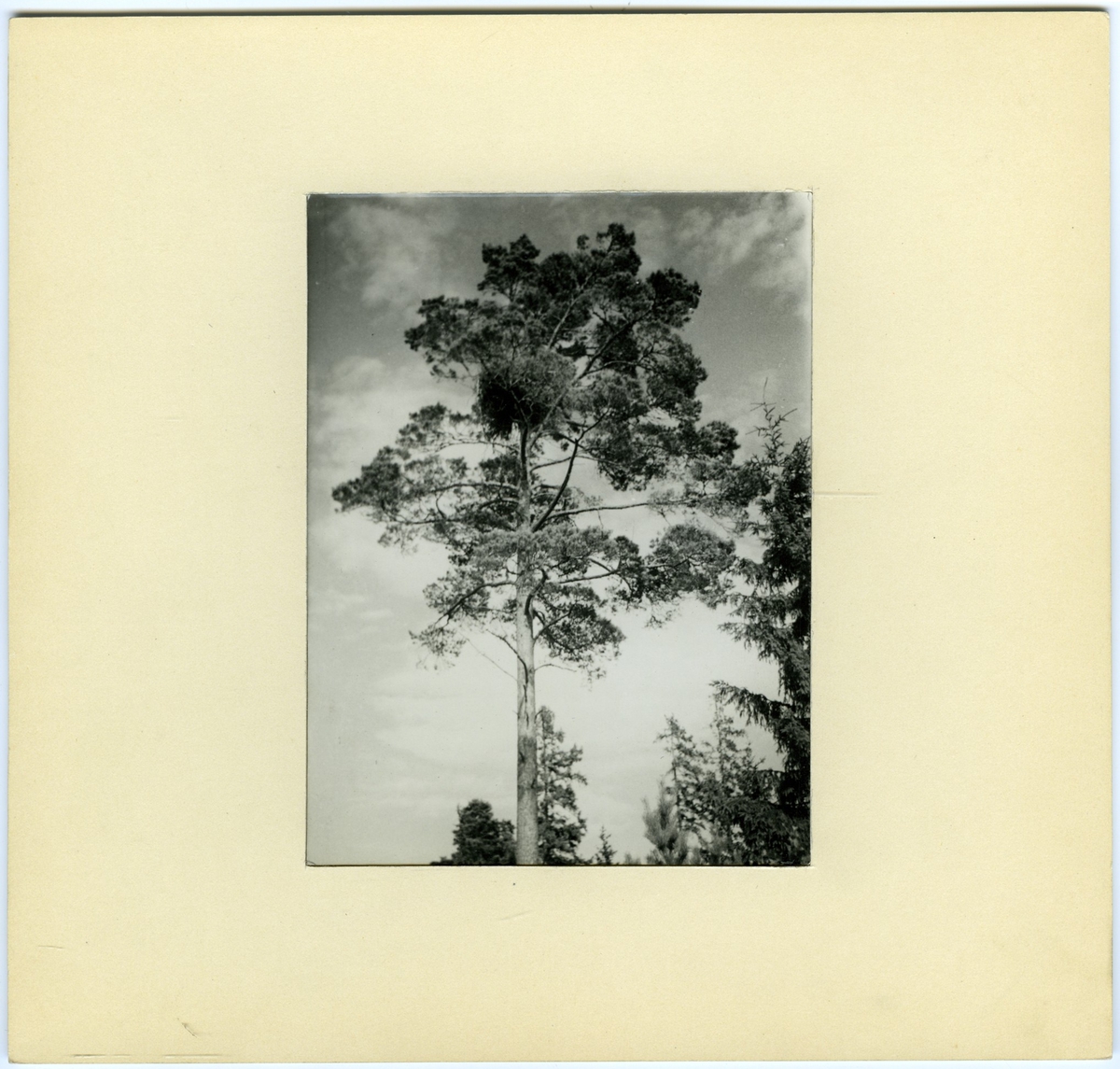 'Bildtext: ''Havsörnarnas botall.'' :: Vy upp mot en tallkrona med havsörnbo. :: :: Ingår i serie med fotonr. 7083:1-55.'