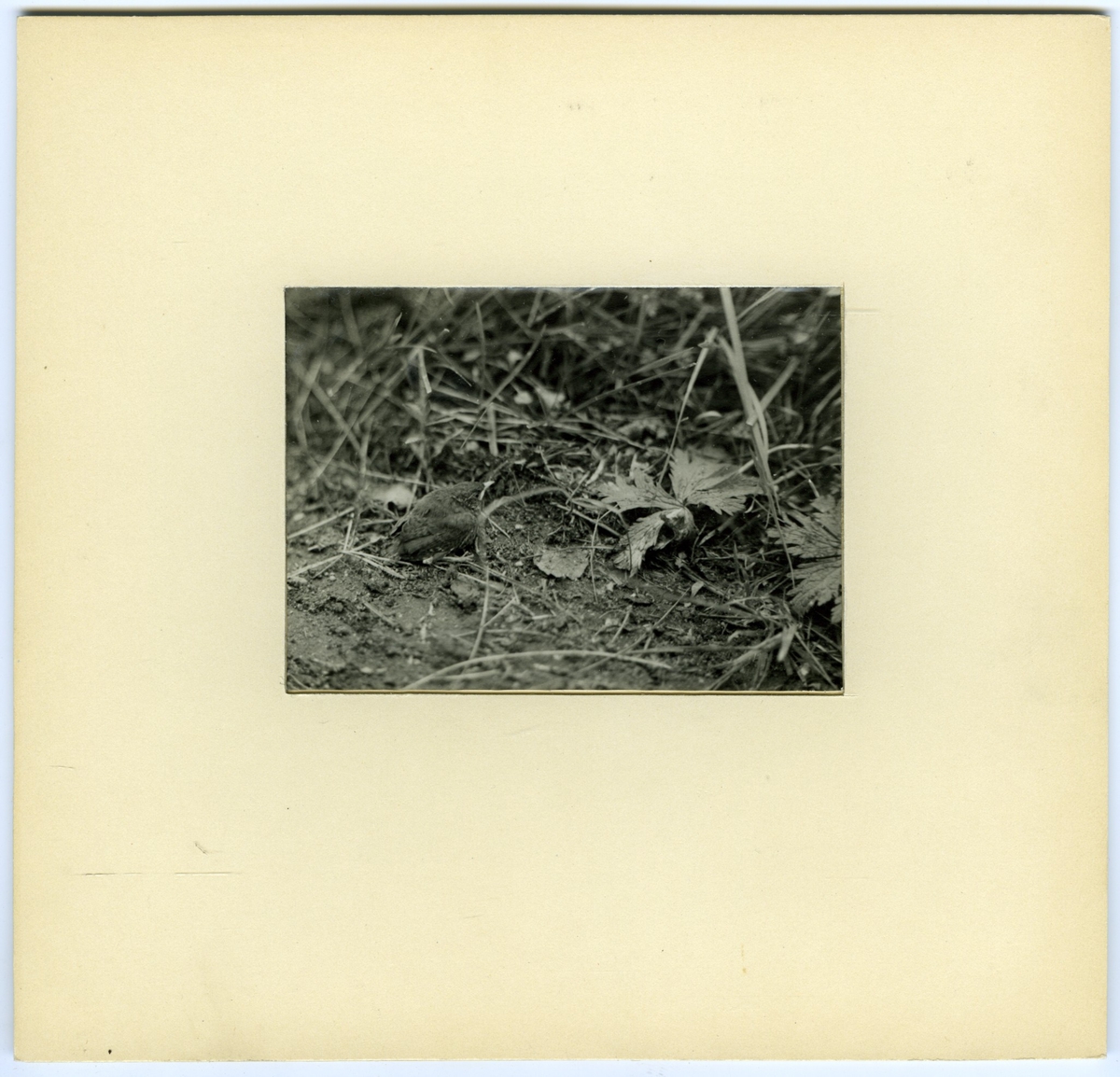 'Bildtext: ''Gärdsmygunge.'' :: Närbild på unge av gärdsmyg, sittande på marken. :: :: Ingår i serie med fotonr. 7083:1-55.'