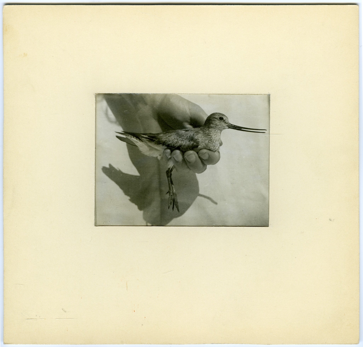 'Bildtext: ''Tereksnäppa.'' :: Tereksnäppa hållen av människorhand, sedd från sidan. :: :: Ingår i serie med fotonr. 7083:1-55.'