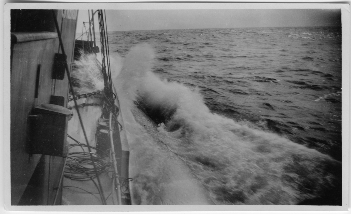 'Serie bilder från valjakt med fotonr. 7089:1-4: :: :: Bild tagen från båtdäck med 1 val liggande i vattnet bak båten. :: :: Ingår i serie med fotonr. 7089:1-15'