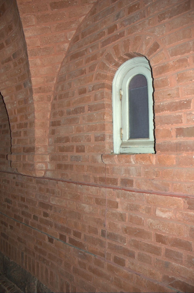 'Toalettfönster sett från utsidan. :: :: Fotonr. 7095 består av en bildserie som dokumenterar diverse utrymmen i byggnaden så som kontor, arbetsplatser, arbetsrum, magasin m.m. Bilder tagna före och efter olika ombyggnationer bl.a.'