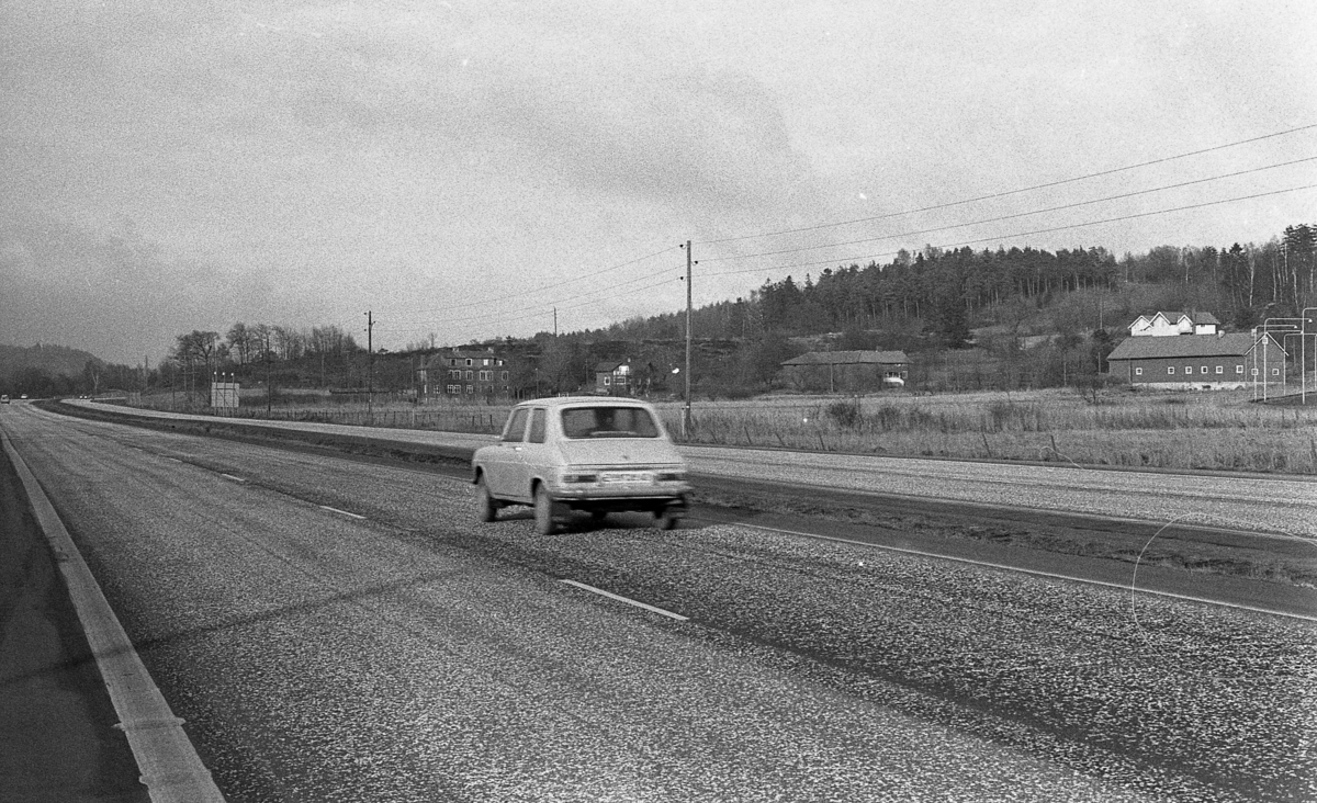 'Vy över väg med bil, troligen i närheten av Dösebacka sandtag. :: :: Ingår i serie med fotonr. 7096:1-30 med bilder från Dösebacka sandtag med omgivning.'