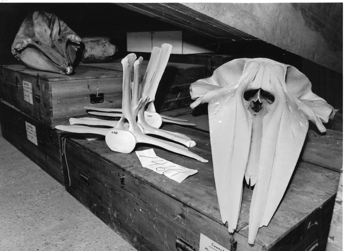 'Skelettdelar liggande på valvinden. :: :: Ingår i serie med fotonr. 7116.'