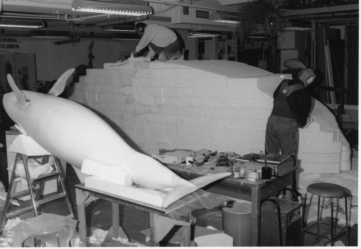 Bygge av val, skulptering i cellplast
