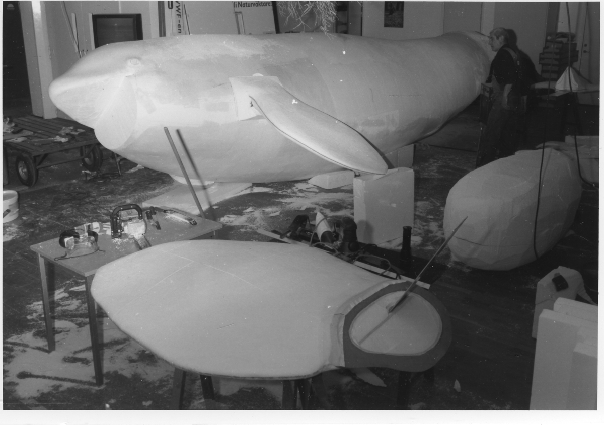 Bygge av val, skulptering i cellplast