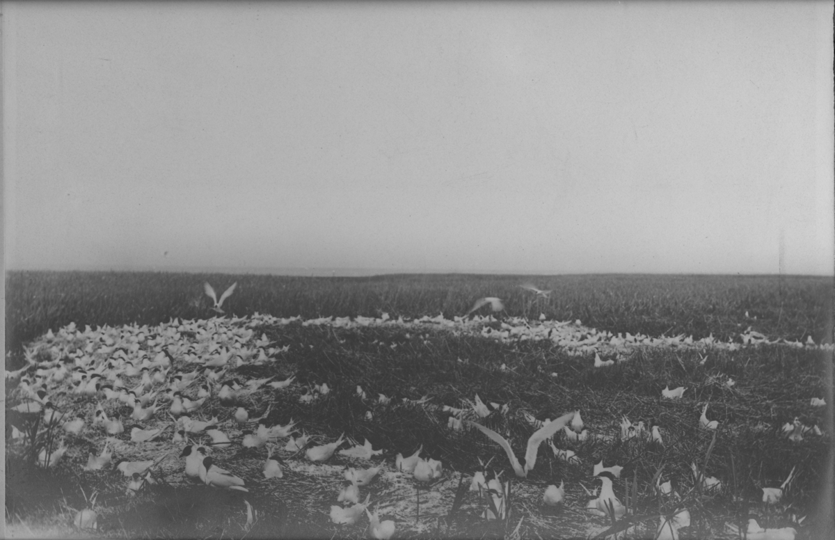 'Stor monterad utställningsbild, med textremsa:''Häckande Kentska tärnor och skrattmåsar. 06-992'''