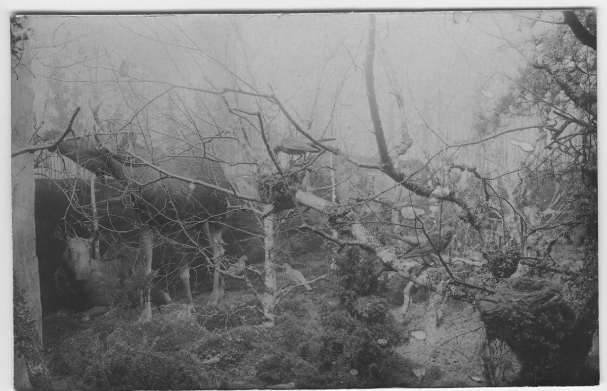 'Från Biologiska Museet i Åbo, landskap med djur, fåglar och bon, älgar. Montering? :: :: Ingår i serie med fotonr. 648-653.'
