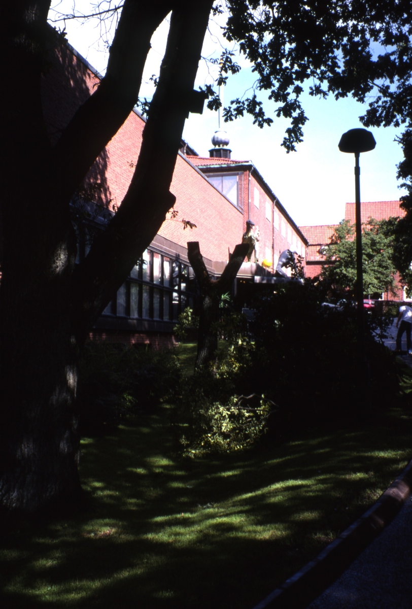 'Trädstam med nedhuggen trädkrona, utanför entrén till Naturhistoriska museet. :: :: Se fotonr. 6951:6-9.'