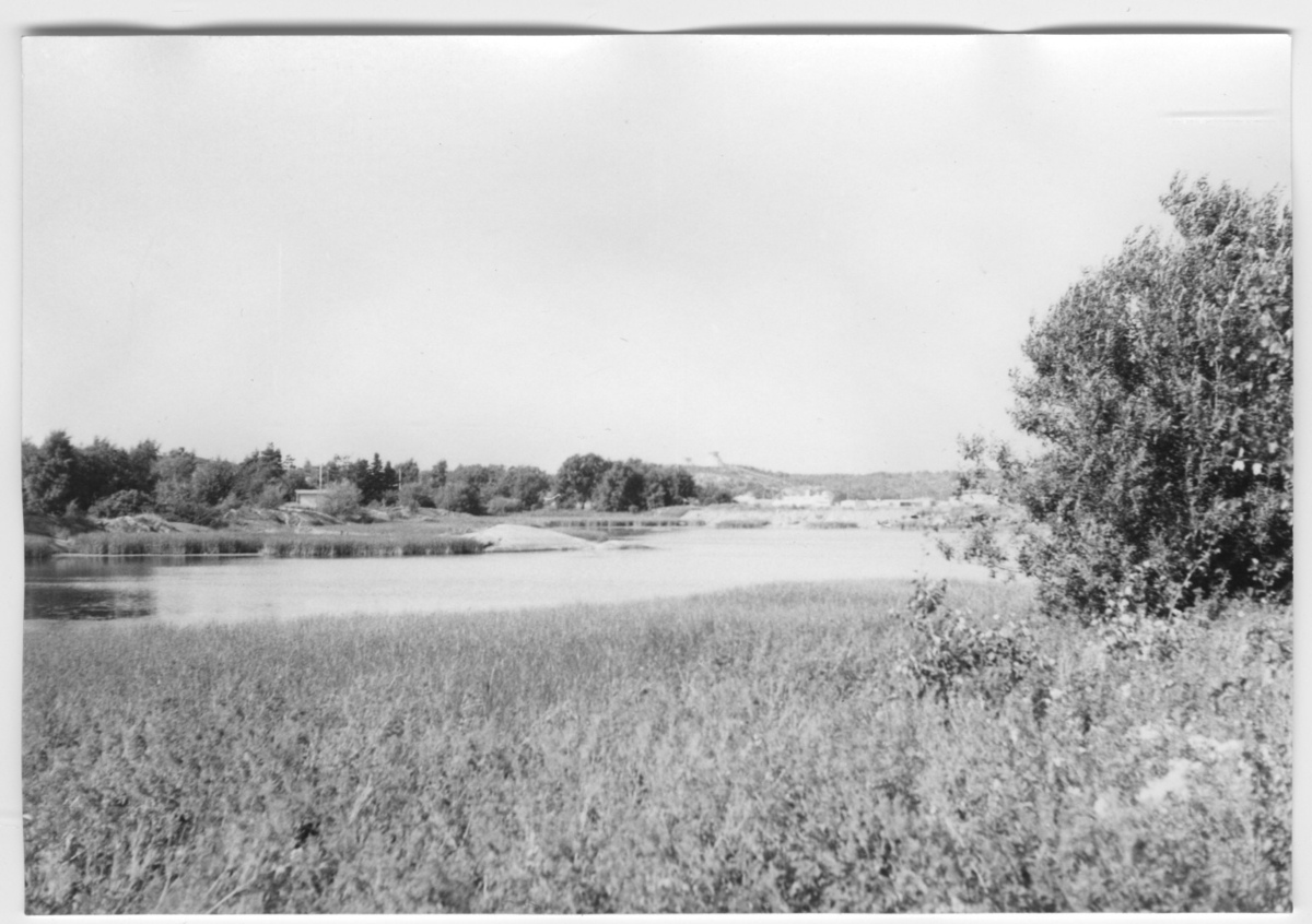 'Bildtext: ''Havsvik med vassvegetation. Riktning 0.'' Fotograferat invid ''runtgående'' väg i närheten av hus, på Skeppstadsholmen. Vy. :: :: Ingår i serie med fotonr. 6970:1-1125, dokumentation av Hisingens naturgeografi, visande landskapsformerna i stora drag och gjord inför exploateringen av området. Platserna för fotograferingen finns utsatta på karta i skala 1:4000 som finns på Göteborgs Naturhistoriska musem. Fotoriktningen mättes med kompass i gammalgrader.'
