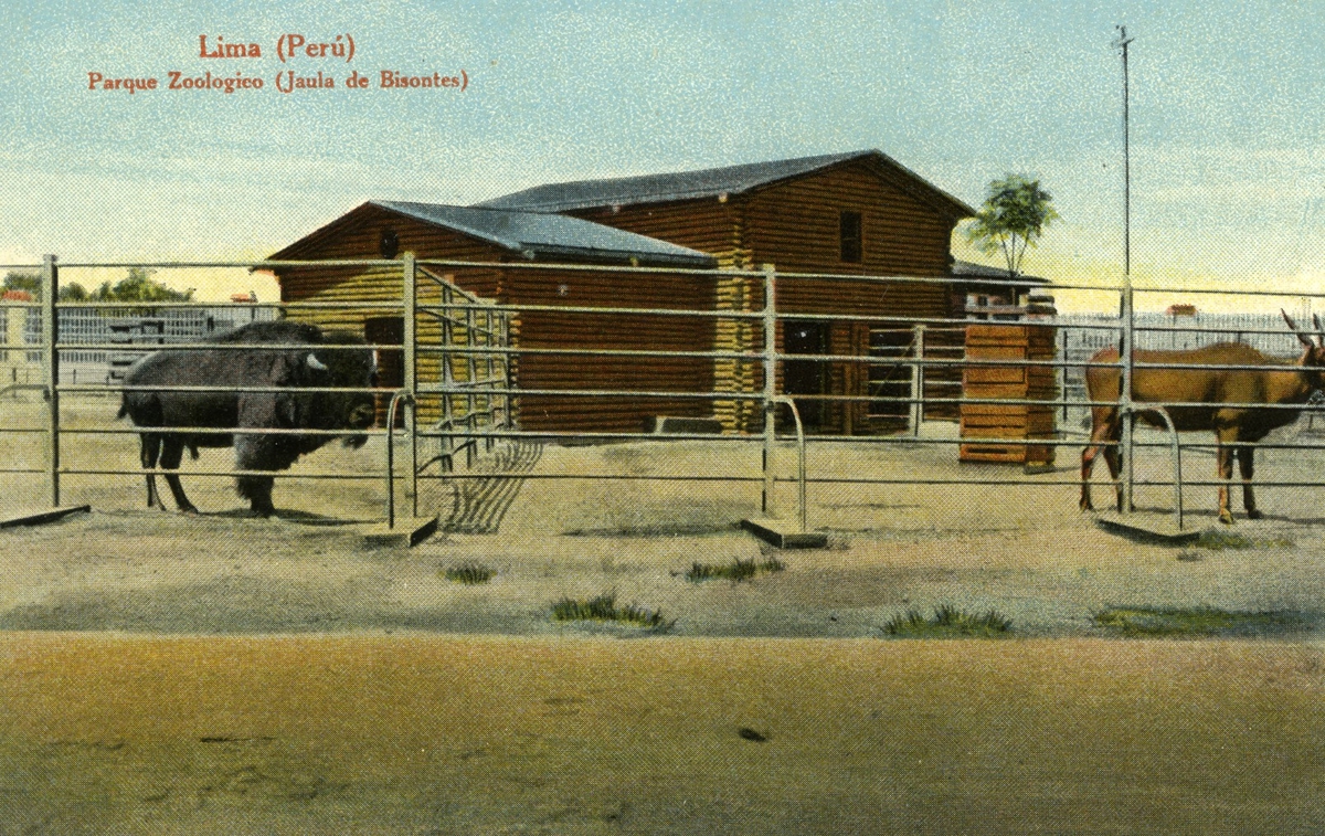 '1 st inhägnad bison. Text på vykortet: ''jaula de Bisontes.'''