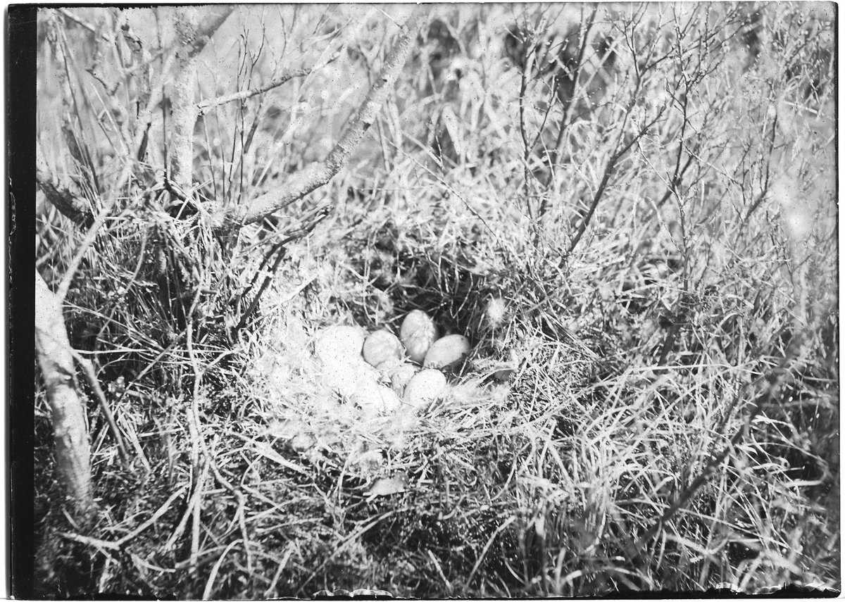 'Gräsand, bo med minst 4 ägg i buskvegetation och gräsvegetation. :: :: Ingår i serie med fotonr. 96-105.'