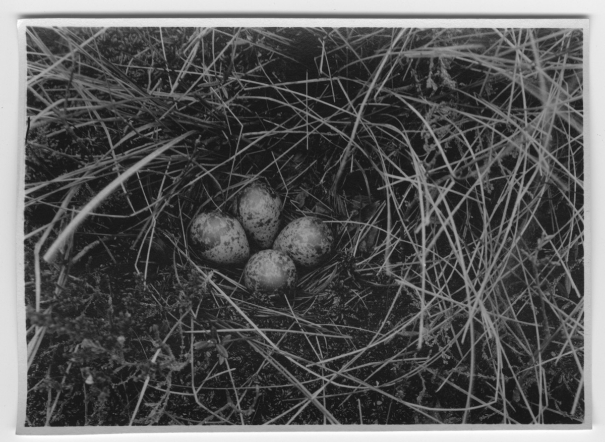'Grönbena, bo med 4 ägg. Närbild. :: :: Ingår i serie med fotonr- 1114-1147.'