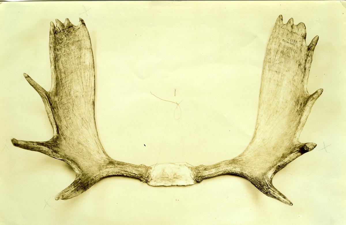 'Horn, 14,5-spetsade (likvärdiga), vikt 8,7 kg. :: :: Hänger i däggdjurssalen, ovanför monterskåp 1 och 2 på Göteborgs Naturhistoriska Museum.'