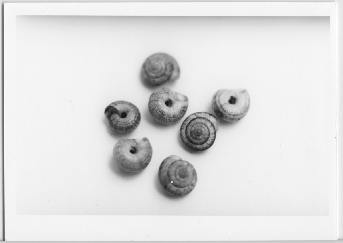 '7 kalksnäckor, exemplar från Löderups strandbad, Skåne. :: :: :: Ingår i serie med fotonr. 6764:1-39.'