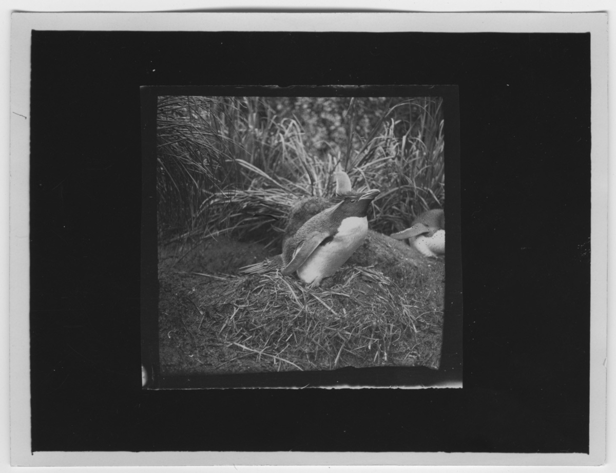 'Klipphopparpingvin på rede med ägg, närbild. :: :: Ingår i serie med fotonr. 2003-2011.'