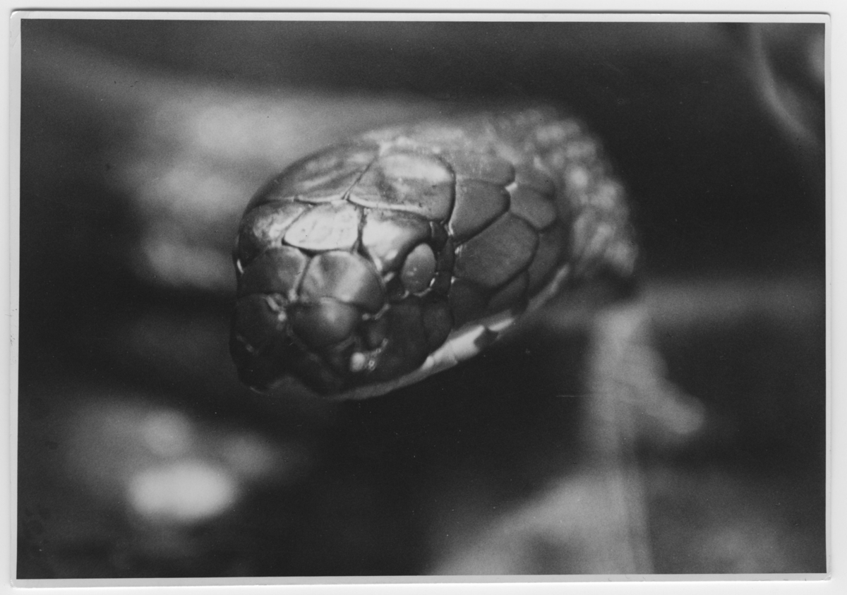 'Huvudbild av 1kungskobra. :: :: Ingår i serie med fotonr. 4501:1-60 ur ingenjör Otto Cyréns ''Ormar i fantasi och verklighet''. Bilden med på s. 198 i verket.'