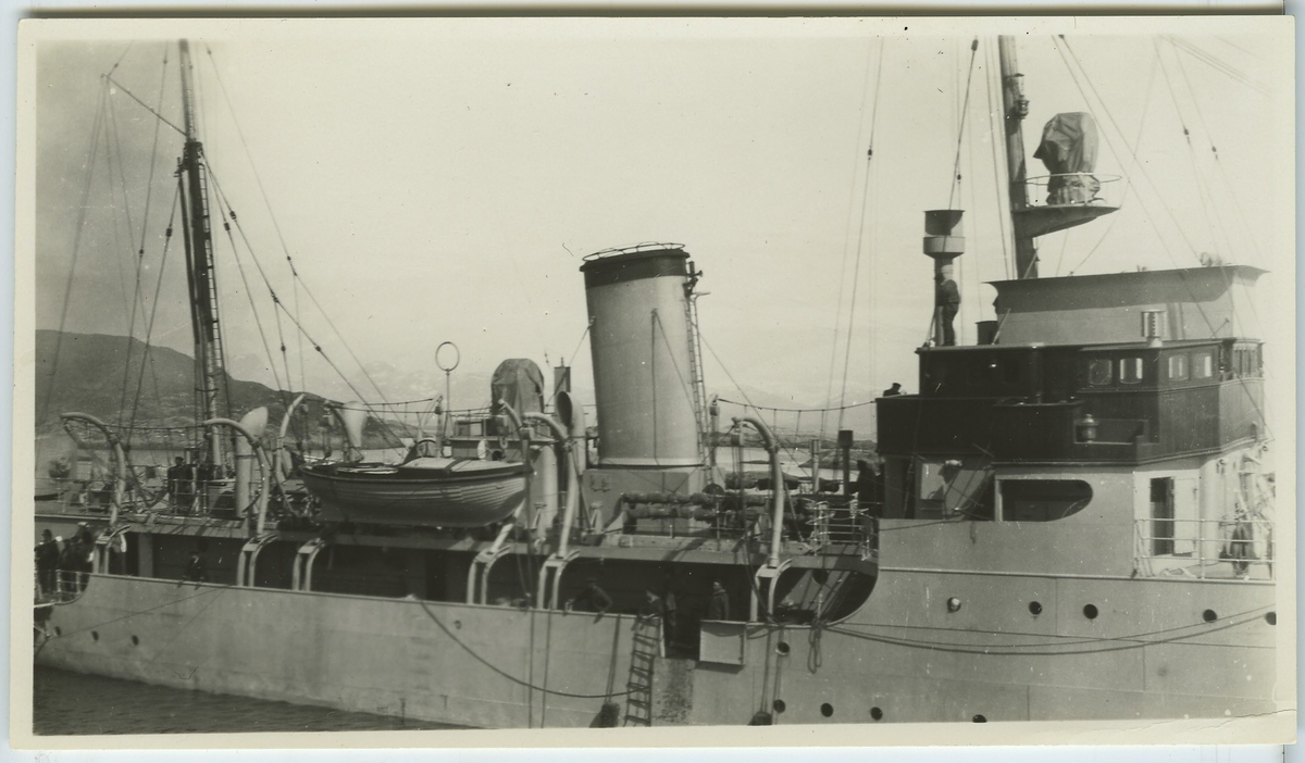 'Båt, fartygsdäck med livbåt. Båten är inspektionskepp Ingolf. :: Enligt kuvert som negativet låg i ''Trip to W Greenland II''. :: :: Ingår i serie Fotonr. 5217:1-103. Se även hela fotonr. 5202-5218 med bilder från Frits Johansen.' Ny uppgift- Båten är Kgl Danske Marines inspeltionsskib INGOLF