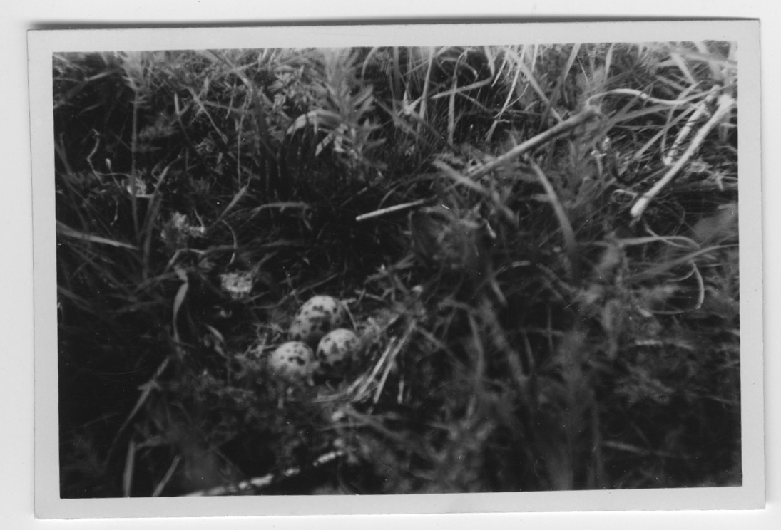 'Text enligt foto: ''Bo med 3 st ägg av fisktärna i en koloni på ungefär 30 bon intill den stora skrattmåskolonien på sydvästra udden av norra Kalvön. Fotot taget på 55 cm avstånd.'' :: :: Ingår i serie med fotonr. 4500:1-172.'