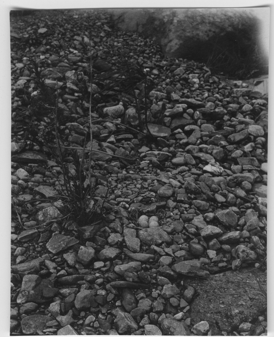 'Mindre strandpipare, bo med 4 ägg, bland stenfält. :: Detta exemplar är samma bild som Fotonr. 812 vilket är fotograferat på en ö i Vänern, Sverige. På baksidan av Fotonr 803 står anteckning om England. :: :: Se serie med fotonr. 795-815.'