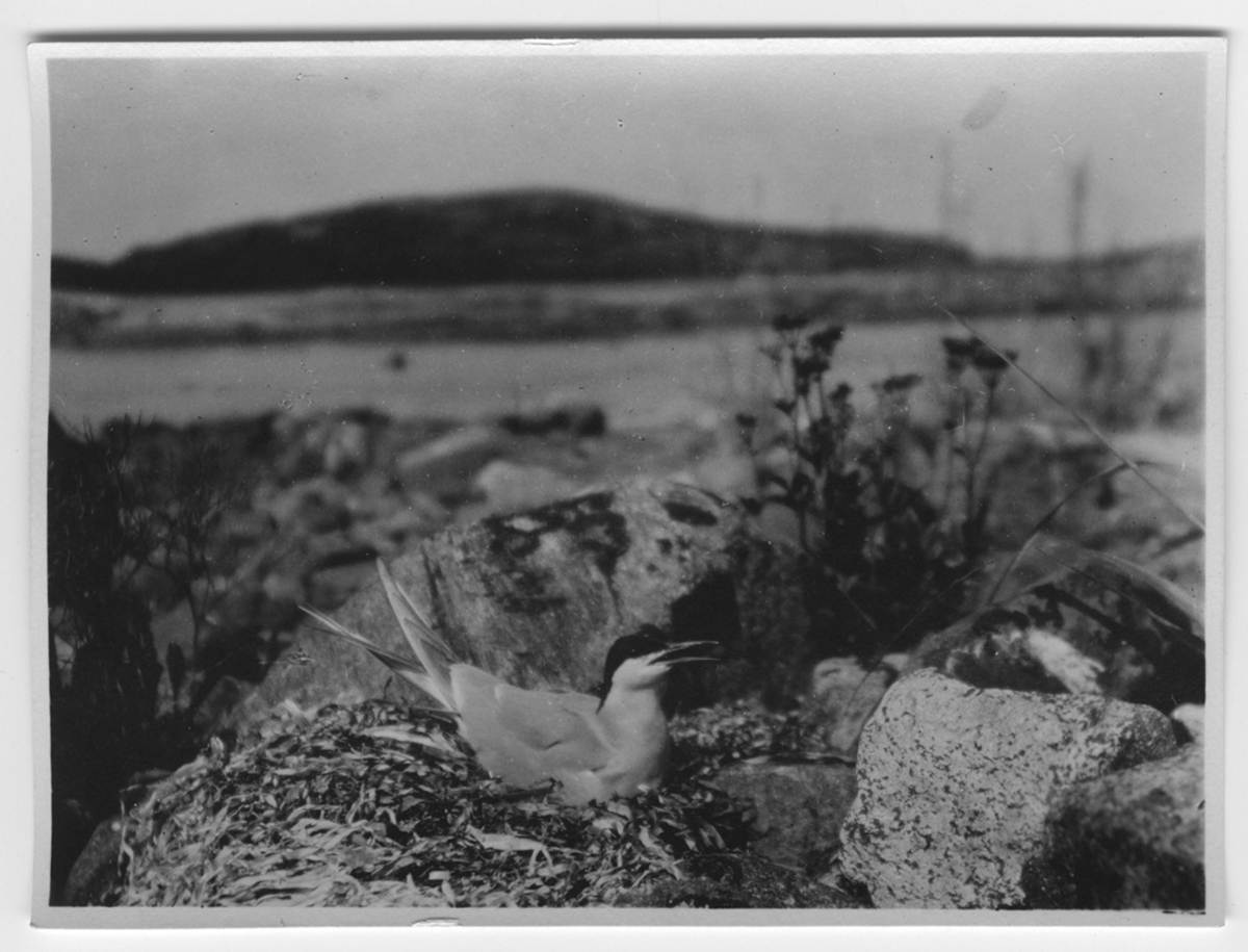 'Fisktärna, ruvande, närbild. Liggande på stenblock. Hav i bakgrunden. :: :: Ingår i serie med fotonr- 1114-1147.'