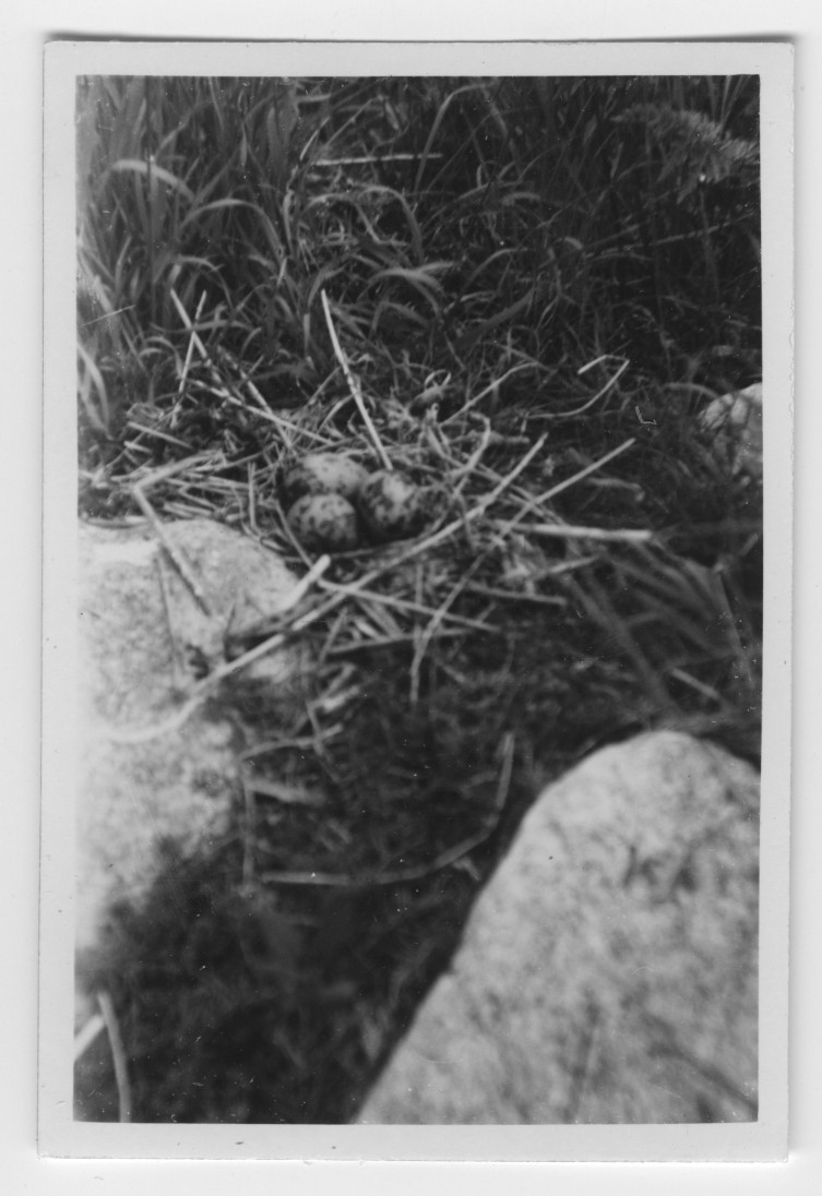 'Text enligt foto: ''Bo med 3 st ägg av fisktärna invid en sten på sydöstra udden av Norra Kalvön invid skrattmåskolonien. Fotot taget på 60 cm avstånd.'' :: :: Ingår i serie med fotonr. 4500:1-172.'