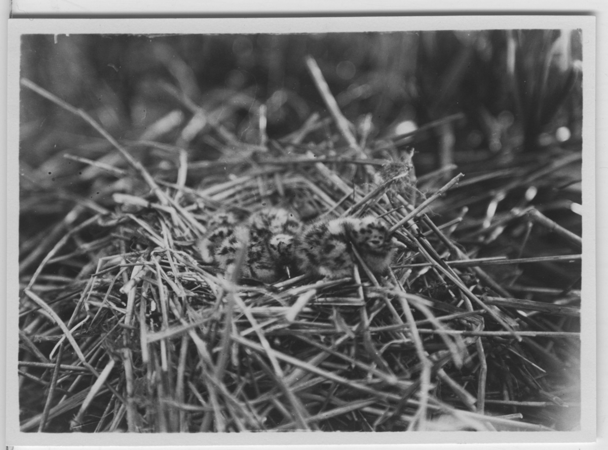 '''Bo av dvärgmås.'' bo med ungar. :: :: Ingår i serie med fotonr. 1091-1108.'