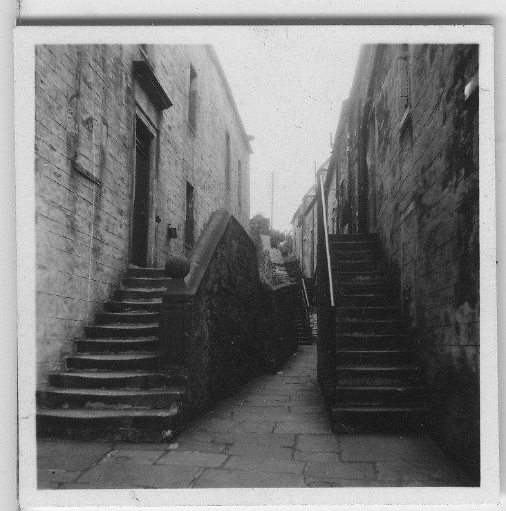 'Från ''Skageraks''-expeditionen till Hebriderna och Shetland: :: :: Gränd i Lerwick (förminskad version av foto nr 4113:17). Smal gränd med stentrappor. :: :: Ingår i serie med fotonr. 4113:1-82.'