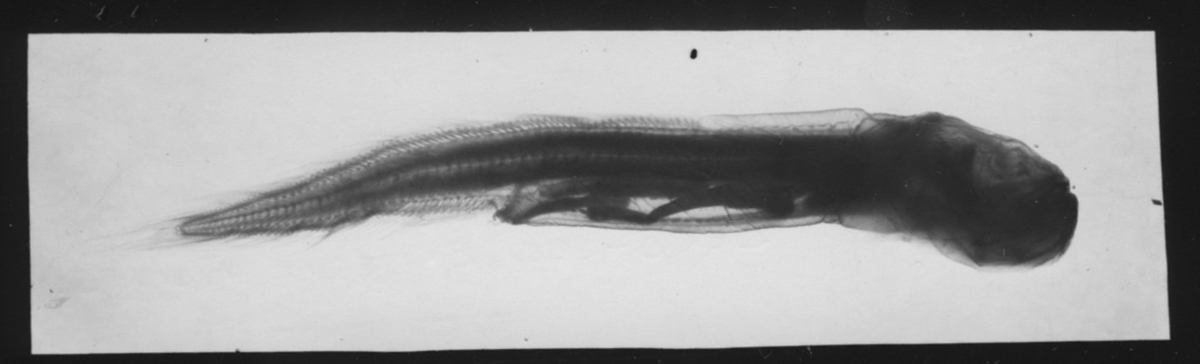'1 st Barathronus erikssoni sedd från sidan. Se även fotonr. 4620. :: :: Ingår i serie med fotonr. 4616-4620, ur Orvar Nybelin: Deep-Sea Bottom-Fishes. Plate VII, fig. 1. Reports of the swedish deep-sea expedition Volym 2 häfte 20.'