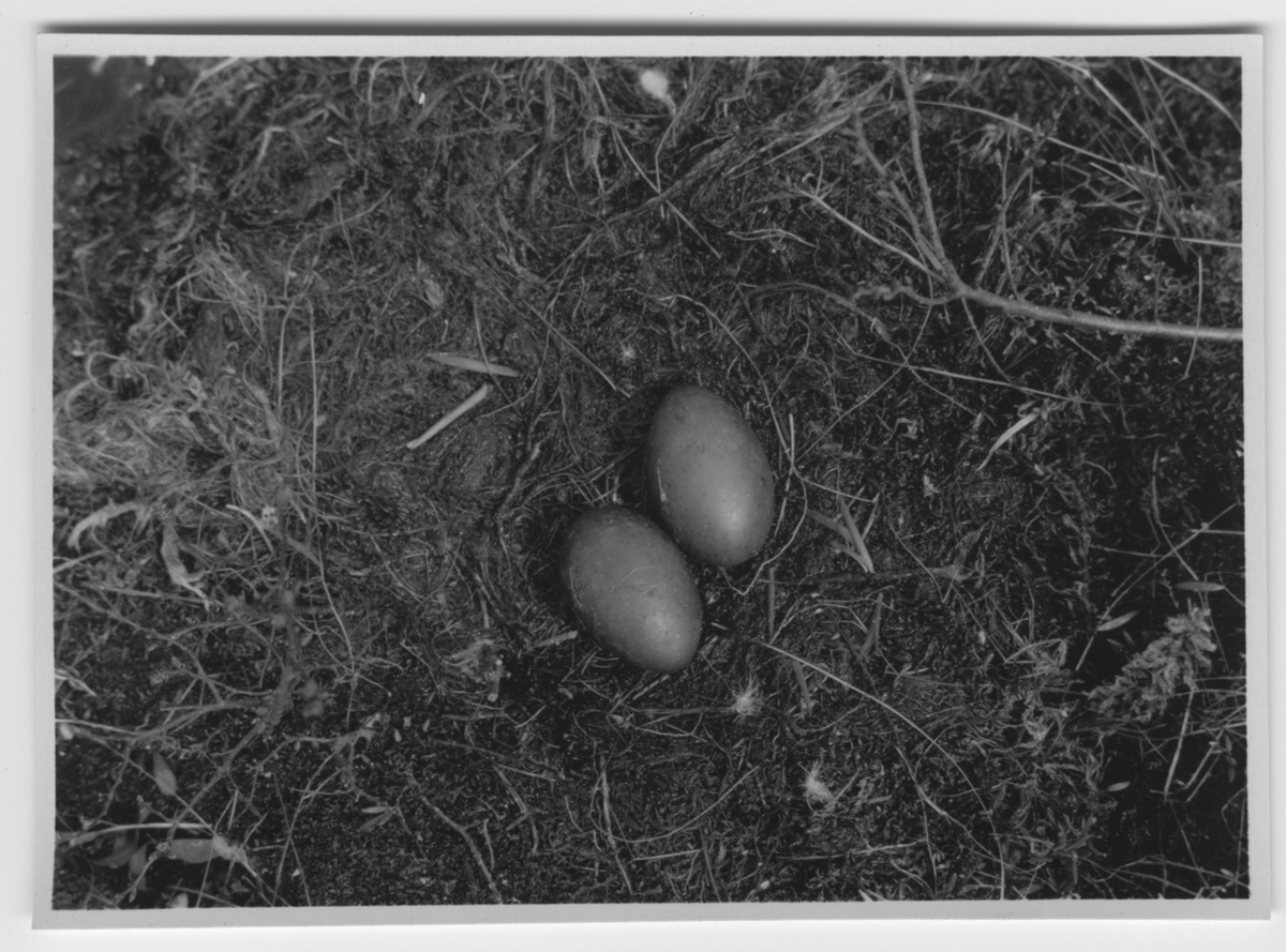 'Smålom, bo med 2 ägg i en tjärn i Hindåstrakten, närbild. :: :: Se serie med fotonr. 1258-1304.'
