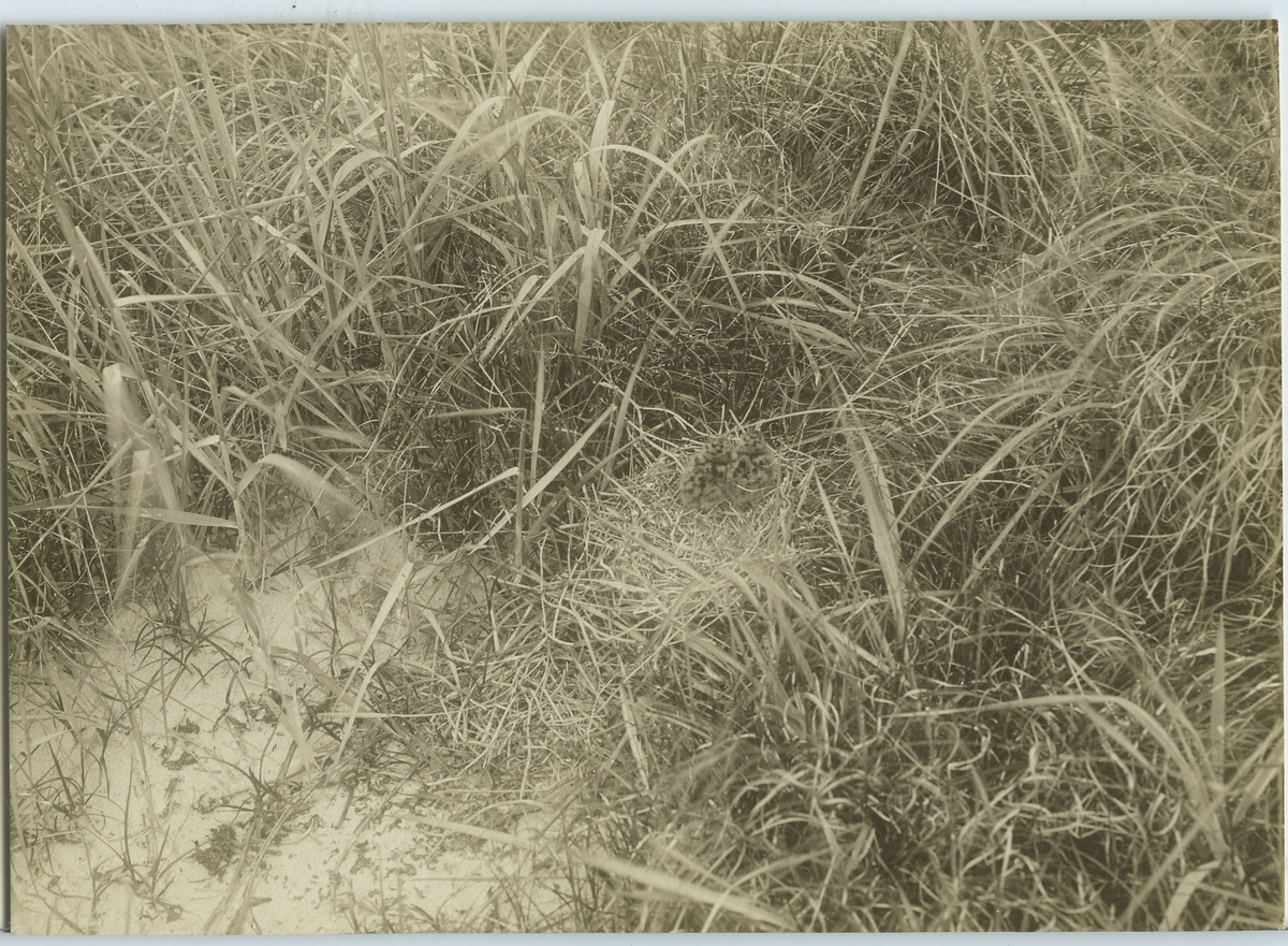 Skrattmås, bo med 2 ungar i sand och vass.