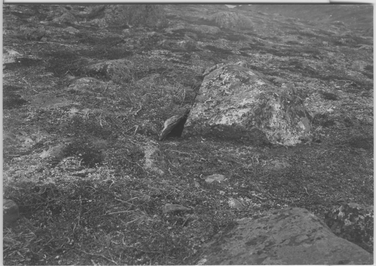 'Bo av snösparv, bland stenblock. :: :: Ingår i serie med fotonr. 128-148.'