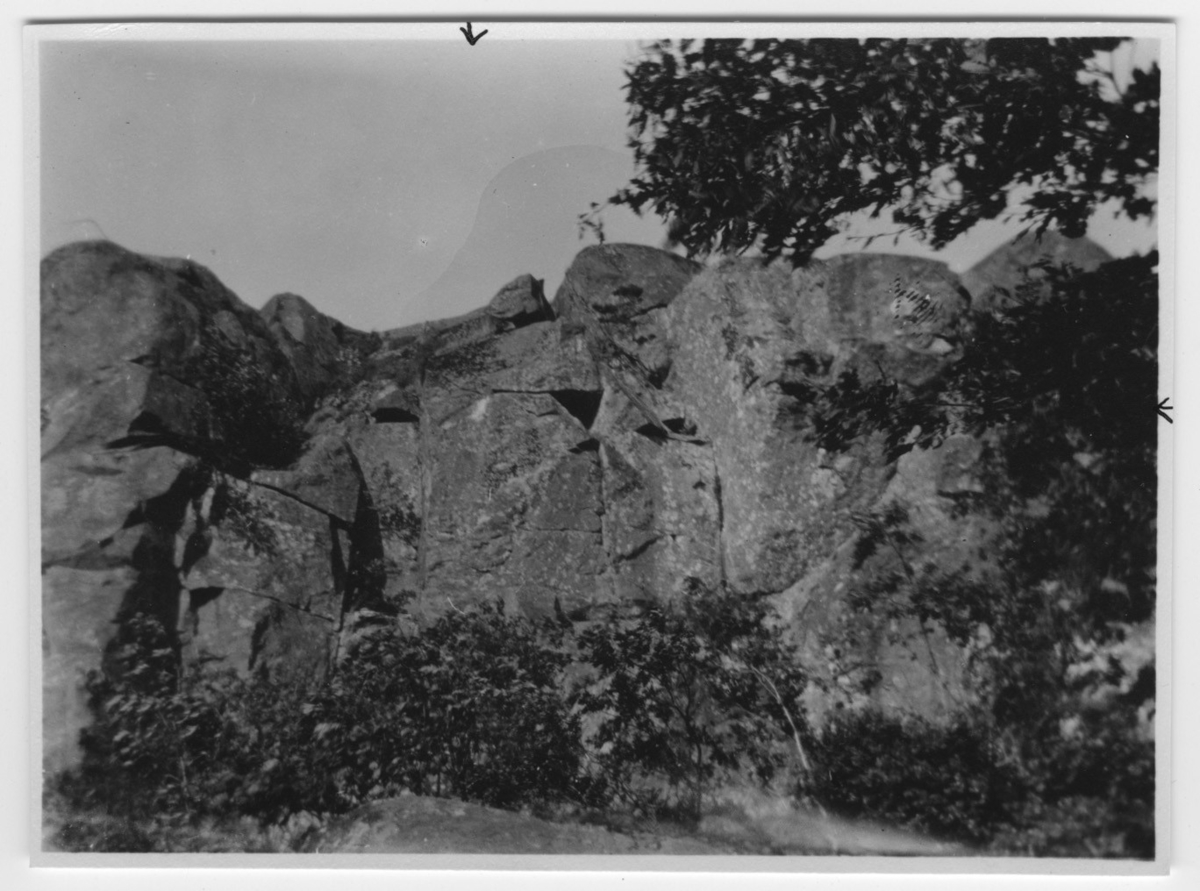 'Tornfalk, bo i ett berg, pilar visar var. Vy. :: :: Se serie med fotonr. 1174-1187.'