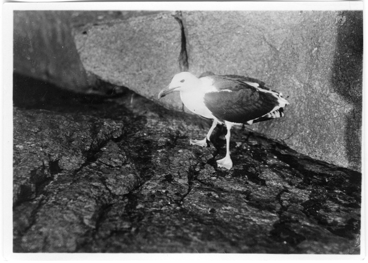 'Havstrut, stående i närbild på berghäll, intill stenblock. :: :: :: Ingår i serie med fotonr. 1771-1837. Se även fotonr. 3151-3200.'