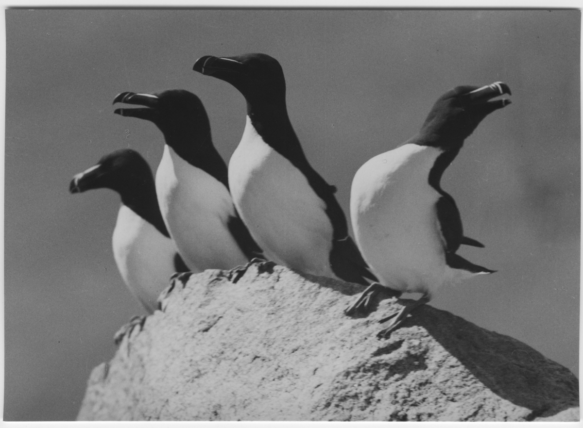 'Tordmular, 4 fåglar i närbild. :: :: Ingår i serie med fotonr. 3382-3407.'