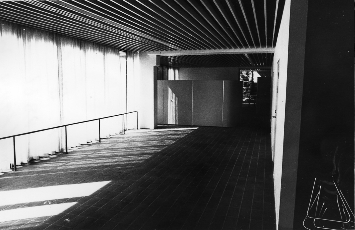'Tillbyggnaden Göteborgs Naturhistoriska Museum juli 1980. Entreplanet med fönstervägg ut mot Slottsskogen. Toaletter in till höger. :: :: Ingår i serie med fotonr. 5527:69-216.'