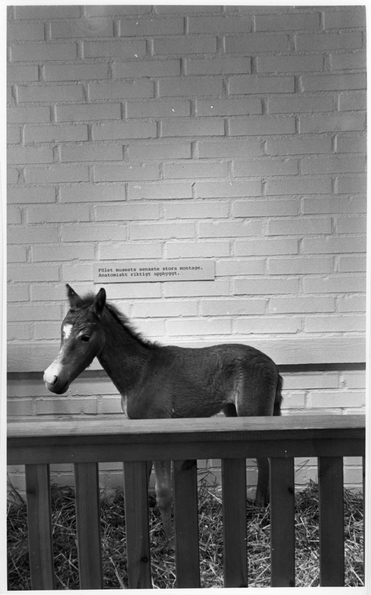 Titel: 'Foto på Jubileumsutställningen, Göteborgs Naturhistoriska museum 150 år. :: :: Monterat hästföl i inhägnad, det, 1983, senast genomförda stora montaget.'