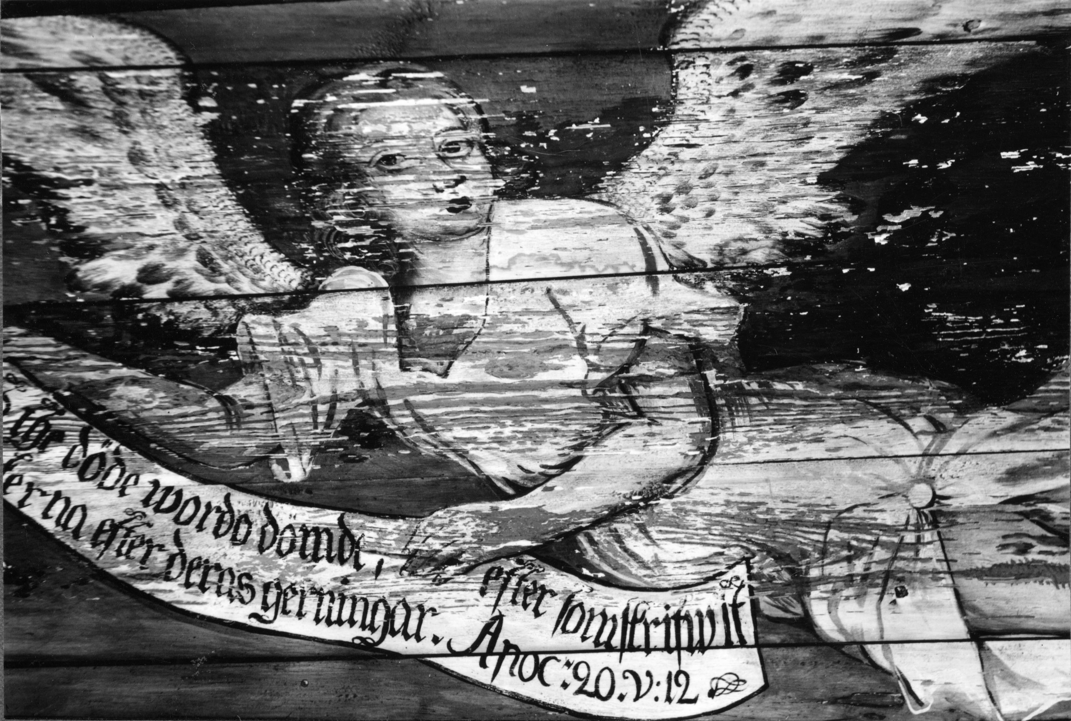 Änglagestalt i östra bågen efter rengöring och fästning av färgen.