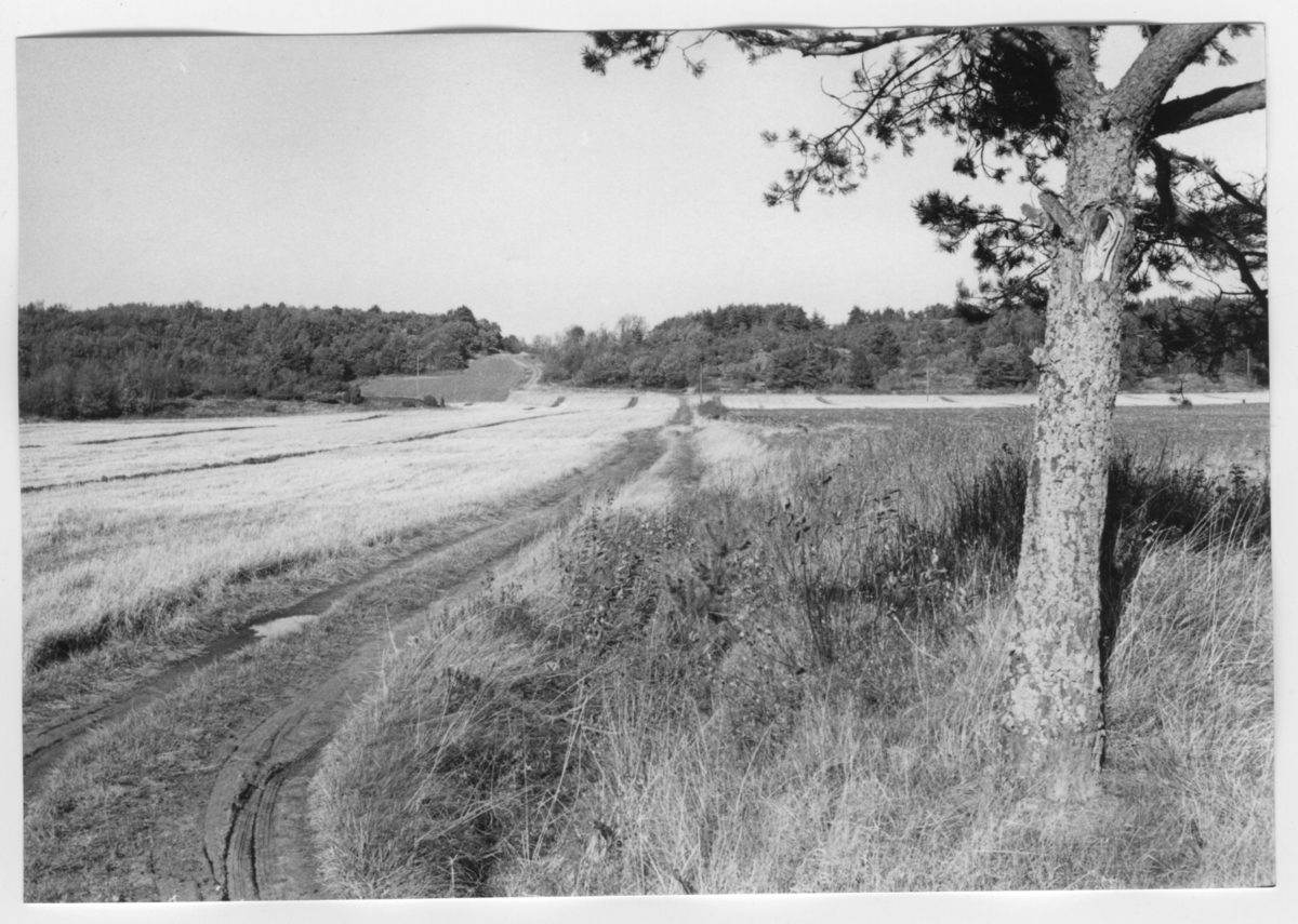 'Bildtext: ''Sedimentdalgång. Riktning 350.'' :: :: Ingår i serie med fotonr. 6970:1-1125, dokumentation av Hisingens naturgeografi, visande landskapsformerna i stora drag och gjord inför exploateringen av området. Platserna för fotograferingen finns utsatta på karta i skala 1:4000 som finns på Göteborgs Naturhistoriska musem. Fotoriktningen mättes med kompass i gammalgrader.'