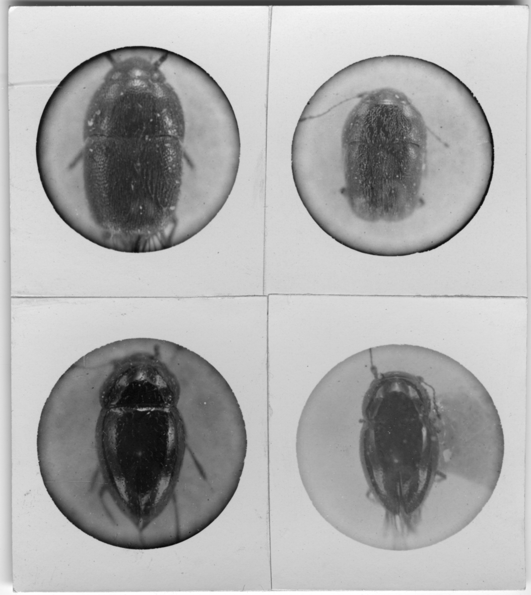 'På baksidan står övre vänstra bilden: ''Trichopteryx grandicollis Mam. Övre högra bilden: ''Actinopteryx fucicola (Allib)'', undre vänstra bilden ''Stividum intermedia Wach.'' och undre högra bildem '' Pifarnuecttar...?''.'