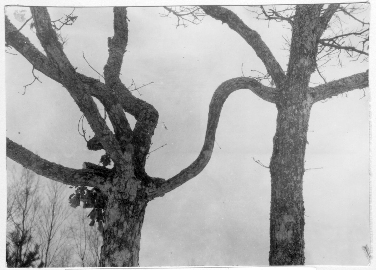 'Bildtext: ''Bifurkation mellan 2 ekar.'' Närbild på 2 ekstammar. :: :: Fotonr. 7046:119-185 indelade som ''Märkvärdiga träd i Göteborgs län och Bohus län''. Ingår i serie med fotonr. 7046:1-383, 7047:1-33 och 7048:1-67 med bilder från Länsjägmästare John Lindners bildarkiv.'
