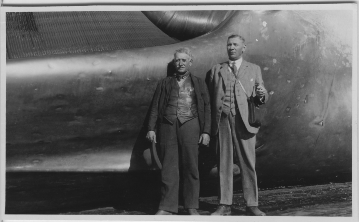 'Kapten C.O. Johnsson och en valfångarekapten, framför en nyfångad blåval, närbild vid käken. :: :: Se även fotonr. 1471.'
