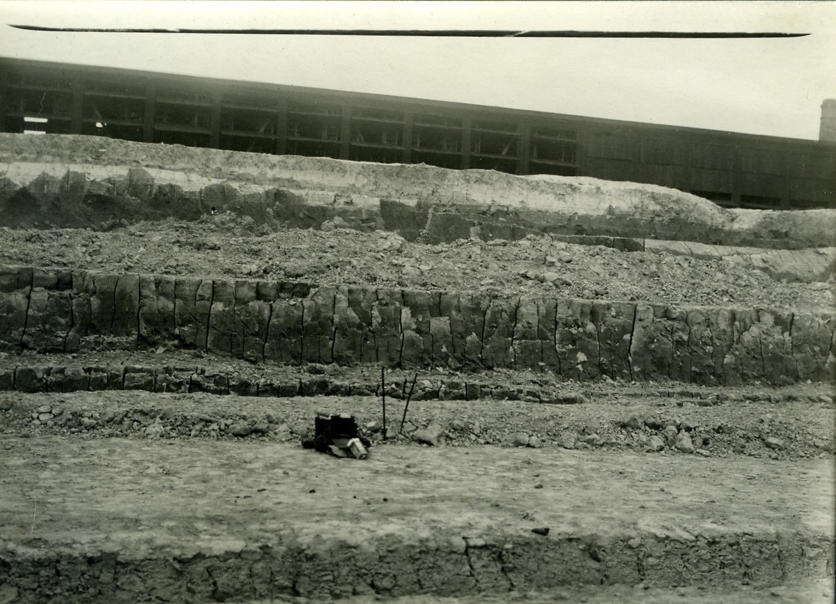 'Vy över fyndplatsen av subfossilt kronhjortshorn. Hornets längd 72,54 cm, funnet i havslera 5 m under markytan. Fynddatum: 1913-06-00. :: :: Se fotonr. 269:1-3. Se även fotonr. 620, 4478 och 1044.'