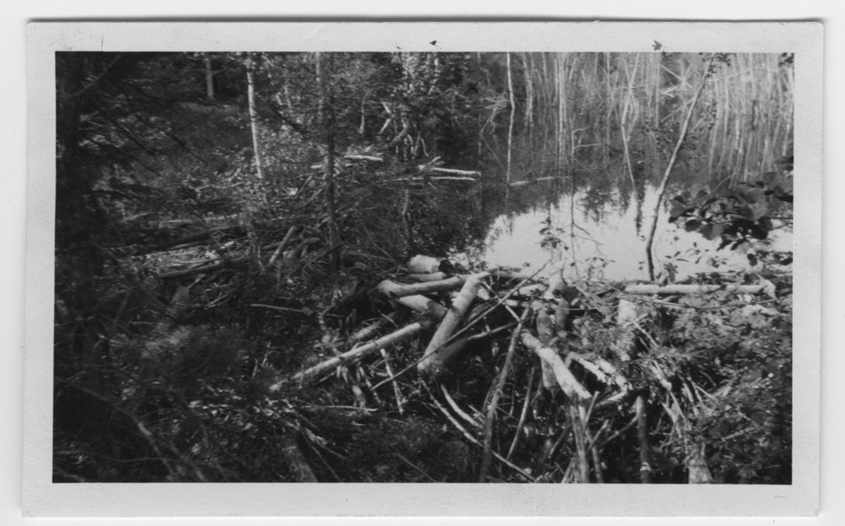 'Bäverdamm och fördämning. :: :: Ingår i serie med fotonr. 1071-1074. Se även fotonr. 1075-1078.'