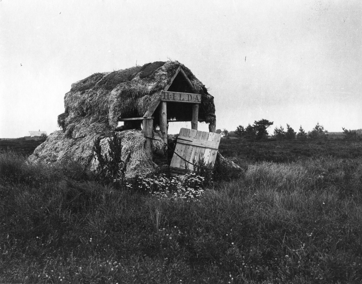 'Akka-expeditionen sommaren 1931: :: :: Vy med fårfålla med namnbräde ''Hilda'' från förlist svenskt fartyg. :: :: Ingår i serie med fotonr. 2182-2234.'