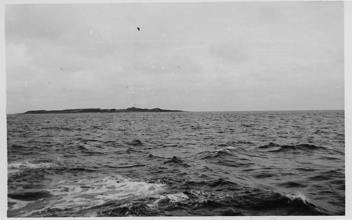 'Kattegattexpeditionen 1933: :: :: Hesselö sedd från avstånd till havs, ur sydvästligt läge. Fyrtorn synligt. :: :: Ingår i serie med fotonr. 2804-2826.'