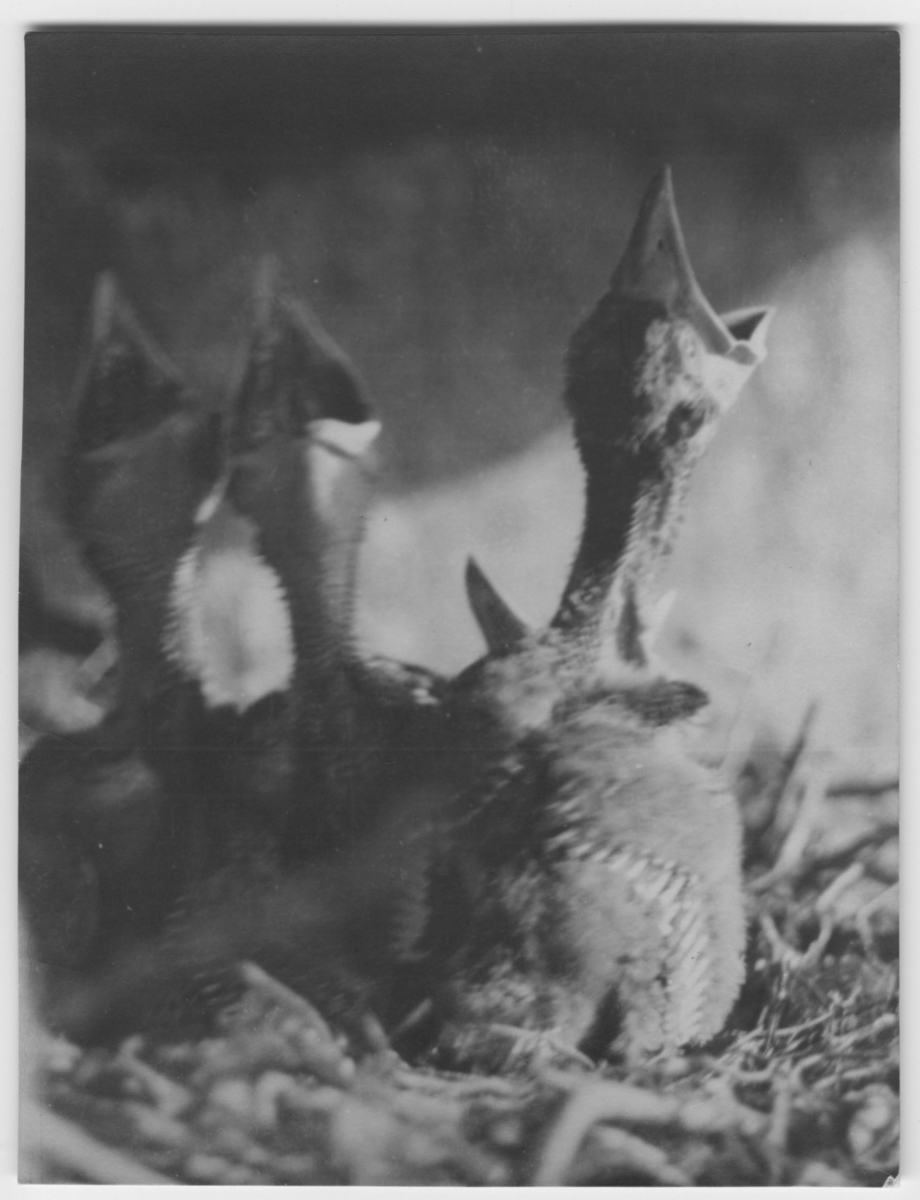 'Bo med 3 st hungriga korpungar i närbild. :: :: Ingår i serie med fotonr. 2524-2557.'