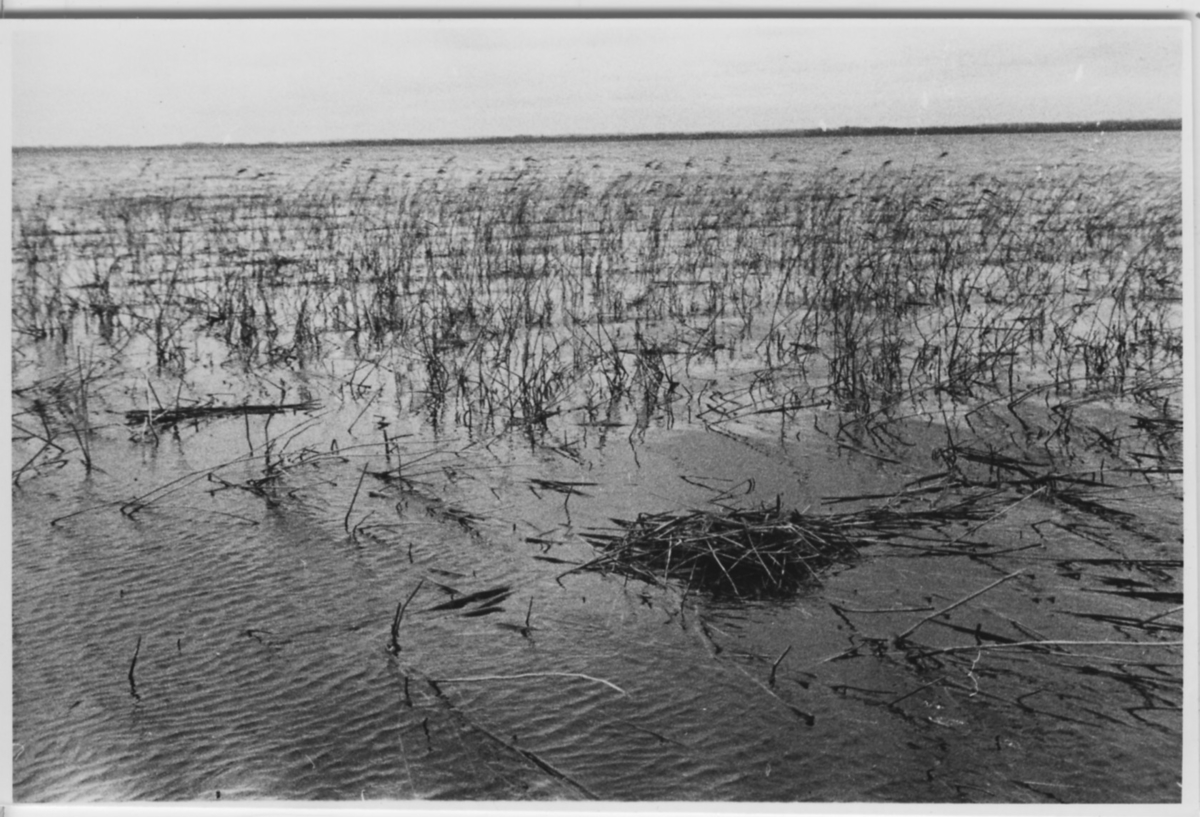 'Biologiska föreningens utfärd till Tåkern, Vadstena m.fl. platser: :: :: Bo av kärrdopping i sjön Tåkern, liggande i vassbälte. :: :: Se fotonr. 3588-3634 samt 3661-3677.'