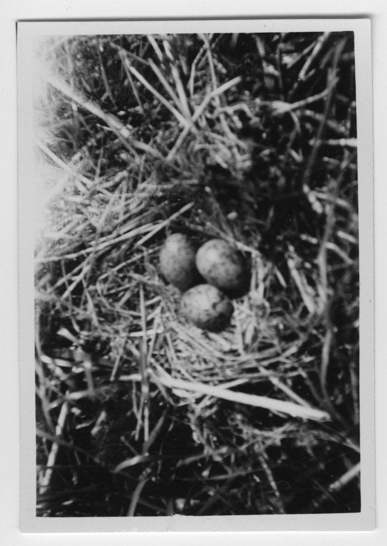 'Text enligt fotot: ''Ett bo med 3 st ägg av skrattmås på en tuva i Lenstadsmossen. Kolonien bestod av ungefär 20 bon. Fotot taget på 60 cm avstånd.'' :: :: Ingår i serie med fotonr. 4500:1-172.'